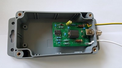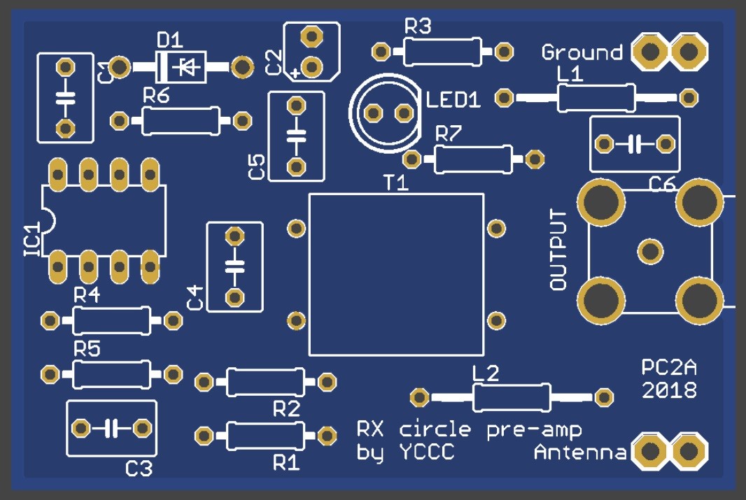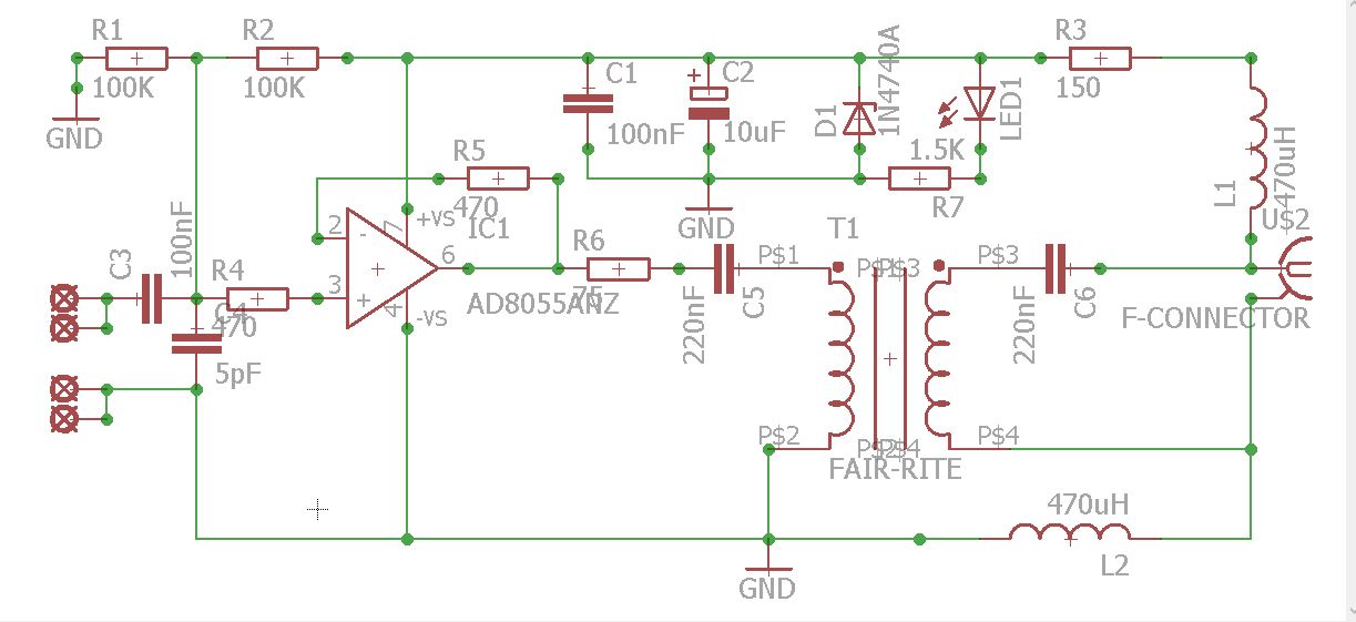 The pre-amp is build around the AD8055AN Voltage Feedback Amplifier. W1FV is the father of this design. His design notes are writen down in a email on the topband reflector.